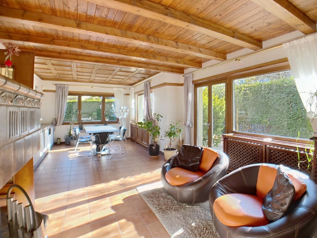 • Un vaste salon / salle à manger d’environ 50 m², chaleureux et baigné de lumière, avec cheminée et accès direct à l’une des terrasses,