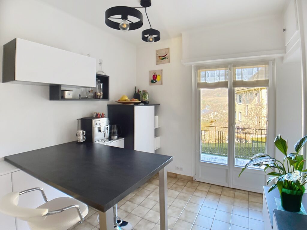• Une cuisine équipée et fonctionnelle, avec espace repas attenant et accès au balcon offrant une vue imprenable sur le vignoble,